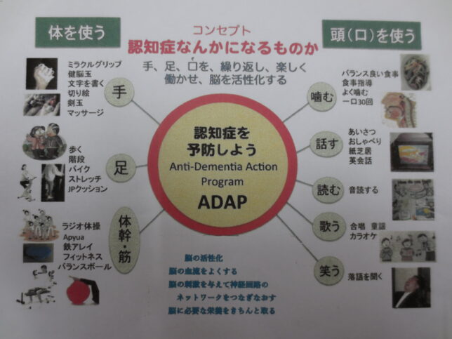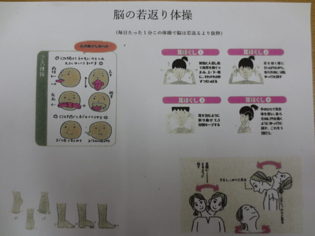 注意点は、運動の前に「お水を1杯飲む」「深呼吸はゆっくりおこなう」「無理をしないで気持ち良いくらいで無理をしない」など、重要なことは毎日続けることで、脳の活性化が推進されるようです。それが「認知症予防」となることを学びました。