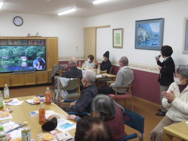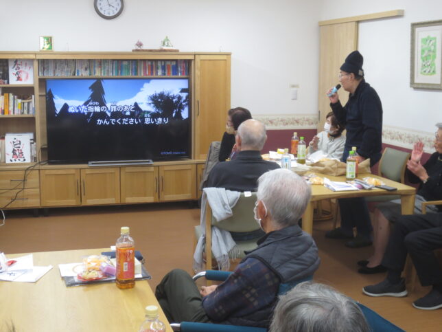 そして忘年会第1部も終わり、第2部「カラオケ大会」に移りました。参加者の皆さんは、積極的に歌のリクエストをコンシェルジュの松井さんにお願いしては楽しく歌っておりました! その1部分の様子を紹介します。