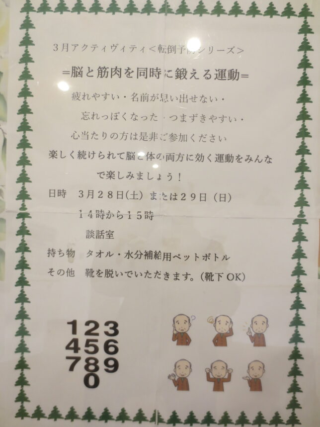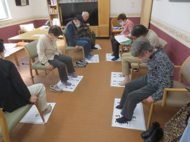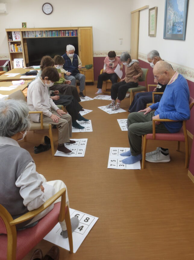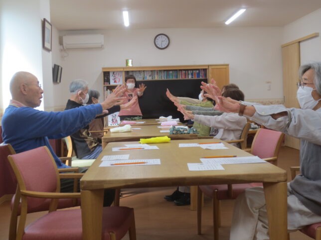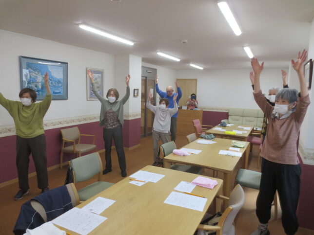 皆さん、いつものことですがしっかりとエクササイズをしていますね。これは認知症予防となりますので、是非お部屋で毎日続けてほしいと思います!